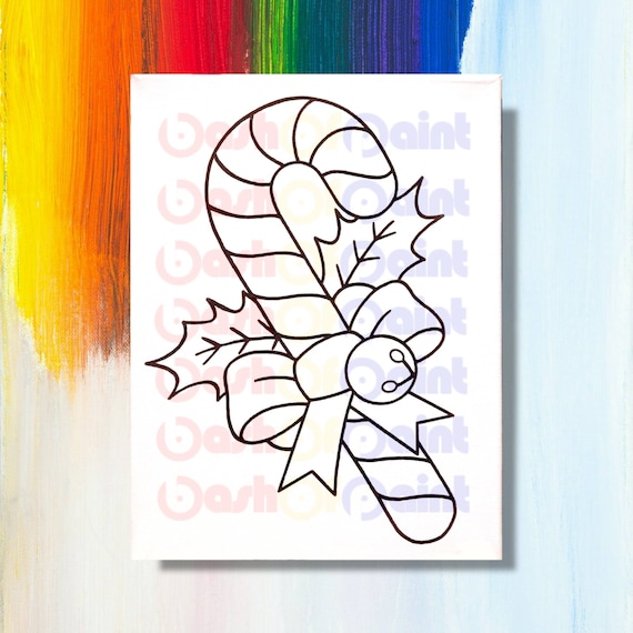 Candy Cane Predrawn Canvas Outline Sketch Diy Christmas Paint Etsy